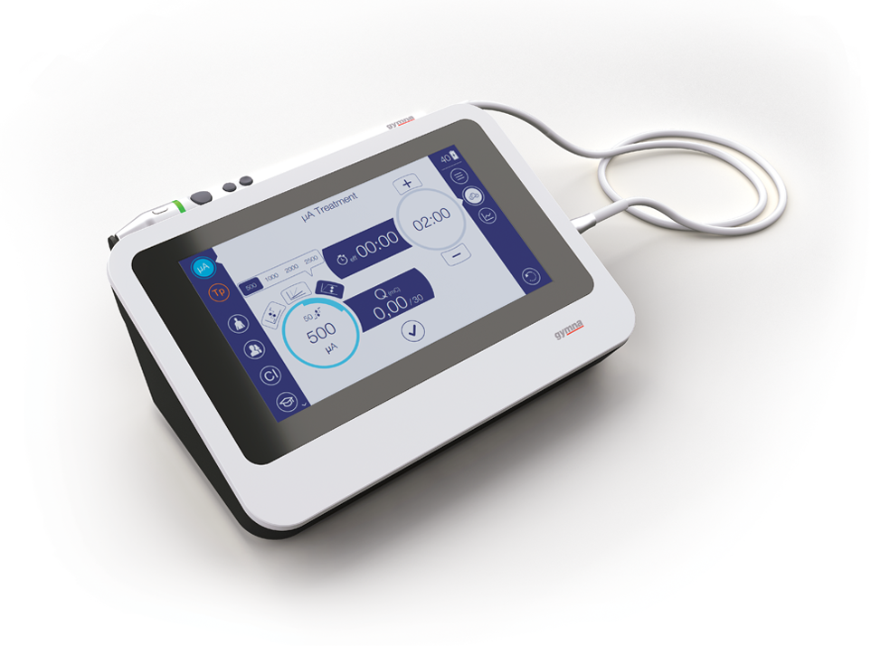 L’écran tactile intuitif de l’unité de contrôle facilite et simplifie le travail avec l’Acure 250. La pièce à main, avec sa conception ergonomique, est facile à utiliser et possède des fonctionnalités ingénieuses, telles qu’un affichage à anneau LED indiquant qu’elle est prête à fonctionner. Le bouton de démarrage / arrêt du traitement et les boutons d’augmentation / diminution de l’intensité sur la pièce à main vous donnent un contrôle total pendant le traitement. Pas besoin de regarder l’appareil ou d’utiliser des pédales. Une fois que vous avez choisi les paramètres requis et les avez confirmés sur l’appareil, l’aiguille peut être insérée dans la pièce à main Gymna Acure et l’appareil est prêt à fonctionner.